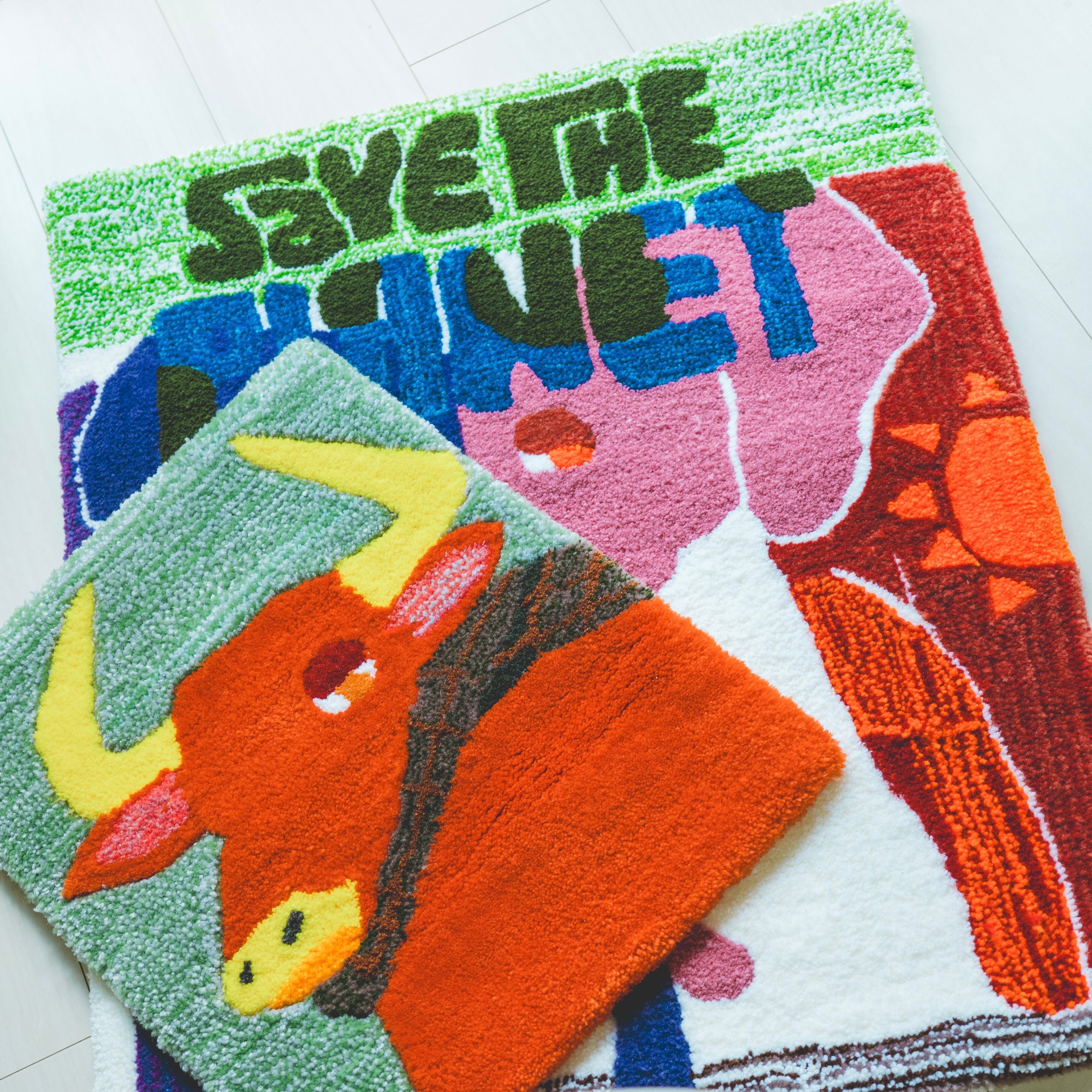※後ろの象のラグは別で販売している作品です。